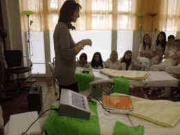 Dňa 19.01.2011 sa žiaci študijného odboru kozmetik zúčastnili školenia kozmetickej firmy Europartners. Školenie bolo zamerané na odborné používanie elektrokozmetických prístrojov, ktoré si naša škola zakúpila. Prístroj SCIN SCRUBBER je ultrazvukový peeling, ktorý vykonáva exfoliáciu, čiastočné hĺbkové čistenie, tonizáciu, lifting a prekrvenie pokožky. Ošetrenie je bezbolestné a s dlhodobým efektom. Druhým prístrojom je telový a tvárový masážny prístroj – ULTRAZVUK, pomocou ktorého sa vpravujú účinné látky, krémy, ampulky a vitamíny až do hĺbky buniek. Ultrazvuková vlna zmäkčuje pokožku, vyhladzuje vrásky, zvyšuje schopnosť absorbovať tekutiny. Tieto prístroje slúžia na ošetrenie pleti pre zákazníčky v našom kozmetickom salóne a ako pomôcka vo vyučovacom procese. Pani Beáta Beregszásliová (školiteľka) zdôraznila, že prístrojová technika je nepostrádateľná súčasť kozmetických salónov. Školenie zaujalo aj názornou praktickou ukážkou všetkých žiakov, majsterky odbornej výchovy a pani riaditeľku.